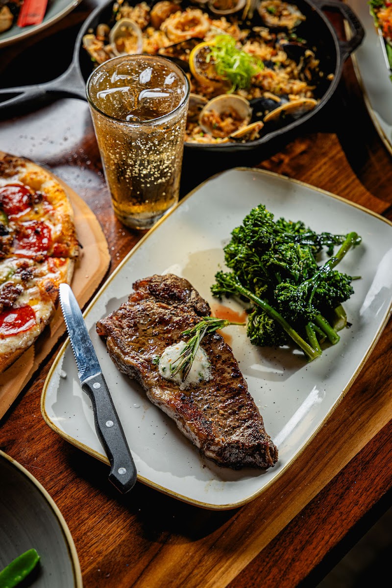 Upon entering, you'll find yourself enveloped in an inviting atmosphere characterized by modern industrial decor with an airy feel—perfect for a casual lunch or a lively dinner with friends. The ambiance is enhanced by spacious seating and a dynamic buzz that adds to the experience.